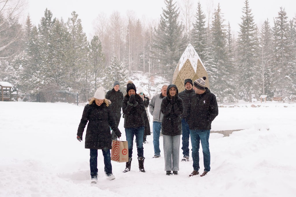 Everyone arrived the night before, buzzing with excitement and trying not to blow the surprise. The plan? Hide the family near the bridge at Betty Ford Gardens, let Ty lead Peri to the snowy Betty Ford Gardens proposal spot, and then cue the surprise celebration.